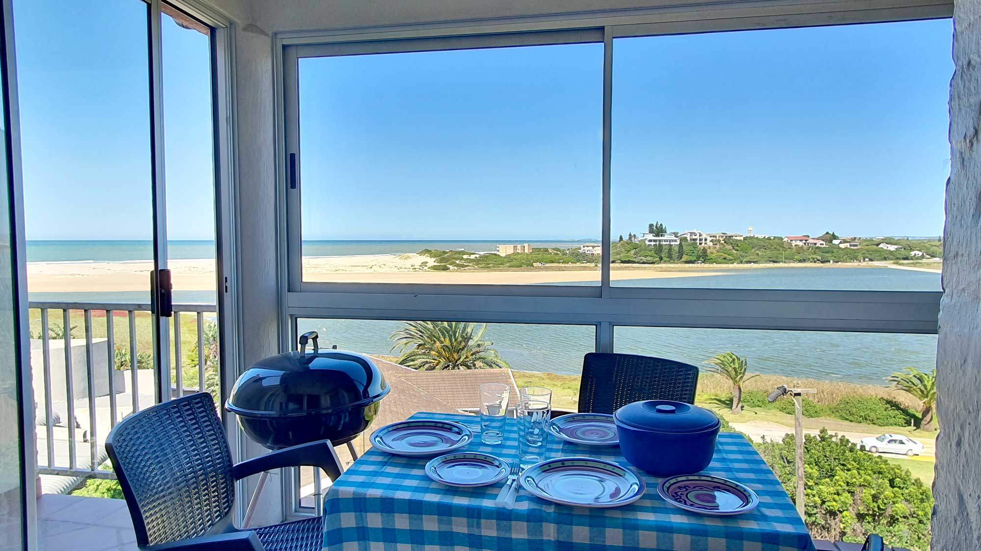 Self-catering chalets with ocean views in Jeffreys Bay often don't live up to their name sake. Lagoon & Ocean View Retreat does! Located on the top floor of the Dolphin Bay Holiday Flats, the entire estuary and beach is on display 🏞️. Relax at home, taking in amazing views from the perfect perch to enjoy any weather. Walk across the road to sunny sand and maximize on one of the best beaches in South Africa. Places to stay in Jeffreys Bay don't often offer this kind of value!